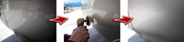 業務用ポリッシャーと業務用コンパウンドを使用した試し磨き程度で除去可能な傷。(5分程度)